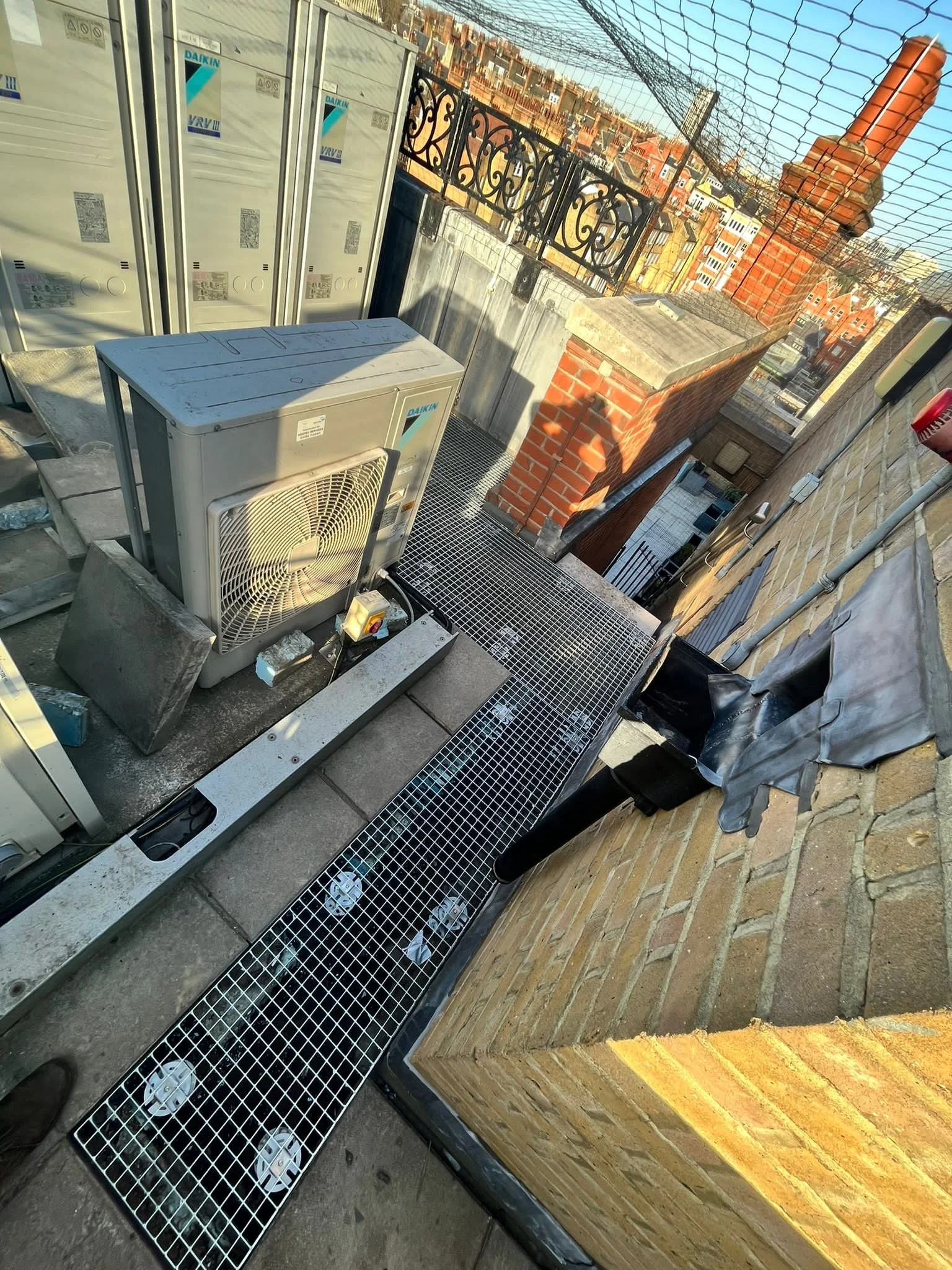 Our client approached us for assistance in resolving an access problem they encountered on the rooftop of their building. The HVAC units were elevated on sturdy foundations above the roof, ensuring that they were not submerged in water. However, this resulted in the walkways surrounding the HVAC units becoming waterlogged, posing a safety risk for maintenance activities. To address this issue, we custom-manufactured grated walkway panels specifically designed to fit around the bases of the HVAC units. These panels were then installed to align with the level of the HVAC unit bases. This solution effectively minimizes the risk of tripping, enhances the safety of maintenance personnel, and ensures that their feet remain dry while navigating the site.